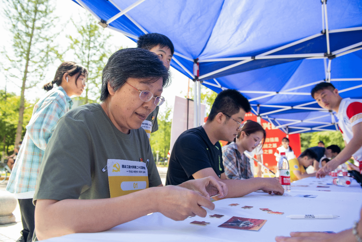 今年比赛各赛段主题分别为“科教兴国”、“文化强国”、“人才强国”、“团结奋斗”、“创新驱动”、“寄语青年”,参赛党员须高举党旗,戮力同心,奋勇拼搏,以接力的形式继承和弘扬党的优秀作风、红色精神和光荣革命传统。同时,各站点穿插的西工大总师连连看、大国重器拼图、三人两足前行等团队协作考验环节,在寓教于乐的氛围中让师生们受到教育、得到锻炼,夯实理论学习基础。