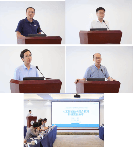 副院长常智勇作《锚定127、拥抱AI,培养新时代的一流机械人才》报告,汪焰恩作《AI赋能研究生培养思考》报告,罗明作《学院科研发展的现状、机遇及AI赋能科研》报告,党委副书记高峻作《用AI打造与一流学院相适配的教管相融的学生工作模式》报告,分别从本科教学、研究生教学、科研工作和学生工作等方面汇报了目标责任制的完成情况。并深入探讨了人工智能技术与学院各项工作的融合创新路径。国家级青年人才周鸿教授作《人工智能技术简介及其科研案例分享》报告,分享了人工智能技术的核心能力和应用于科学研究的案例。