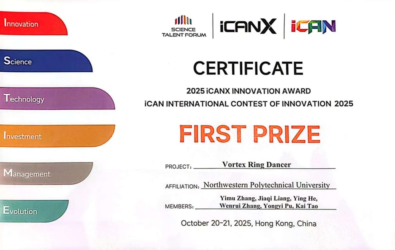 “Vortex Ring Dancer(涡环舞者)”项目团队经过校赛、省赛和国赛层层选拔,从全国1518所高校的32144支团队中脱颖而出,与来自慕尼黑工业大学、香港大学等全球近20所顶尖高校的队伍同台竞技,最终斩获国际总决赛冠军。这也是继2021年台湾三级“鸿蒙之心—可集成式自然能量采集贴”项目荣获国际一等奖后,时隔四年再次站上该项赛事国际最高领奖台。